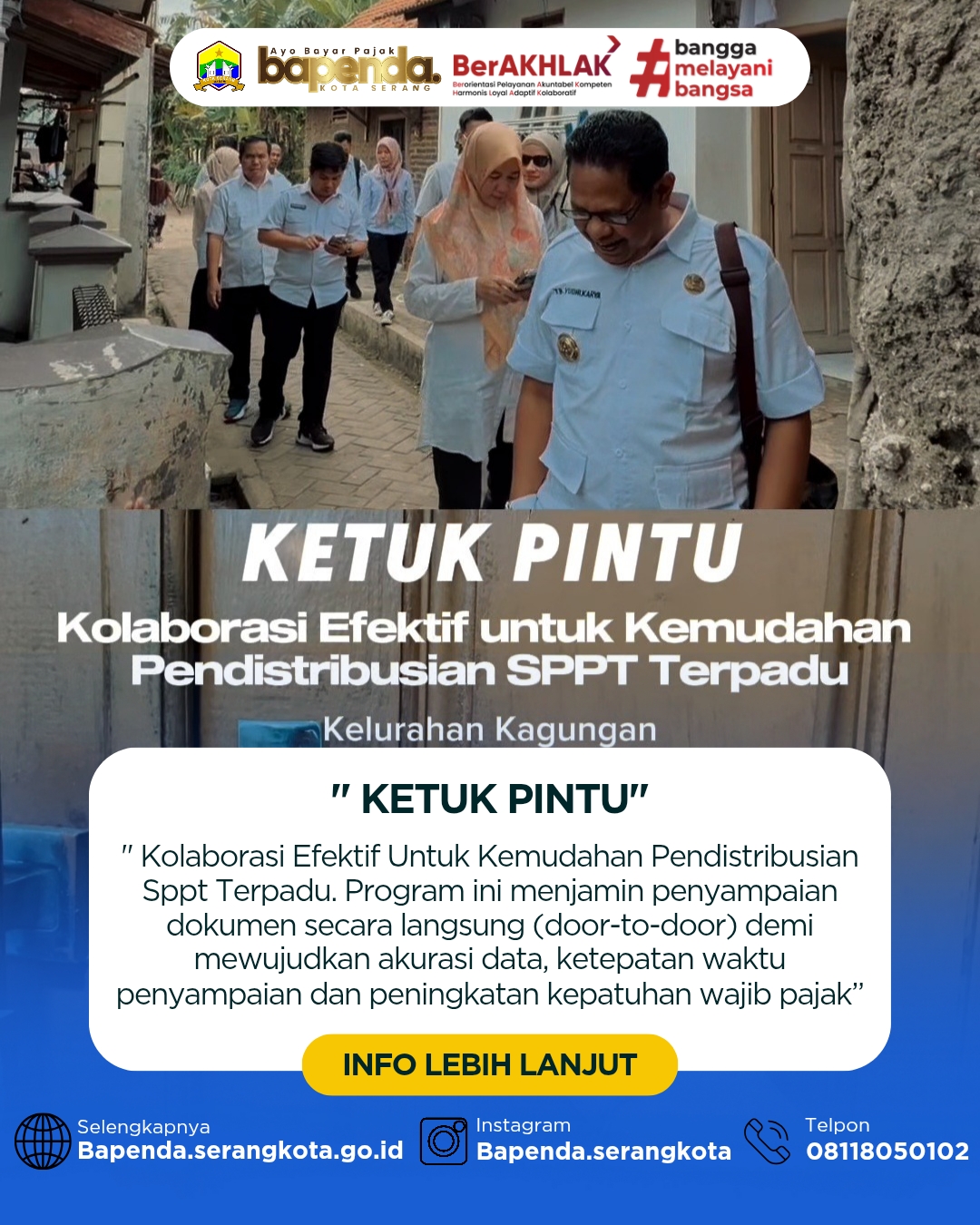 Pemerintah Kota Serang melalui Badan Pendapatan Daerah memberikan kemudahan kepada masyarakat dalam pembayaran Pajak Bumi dan Bangunan Perdesaan dan Perkotaan...